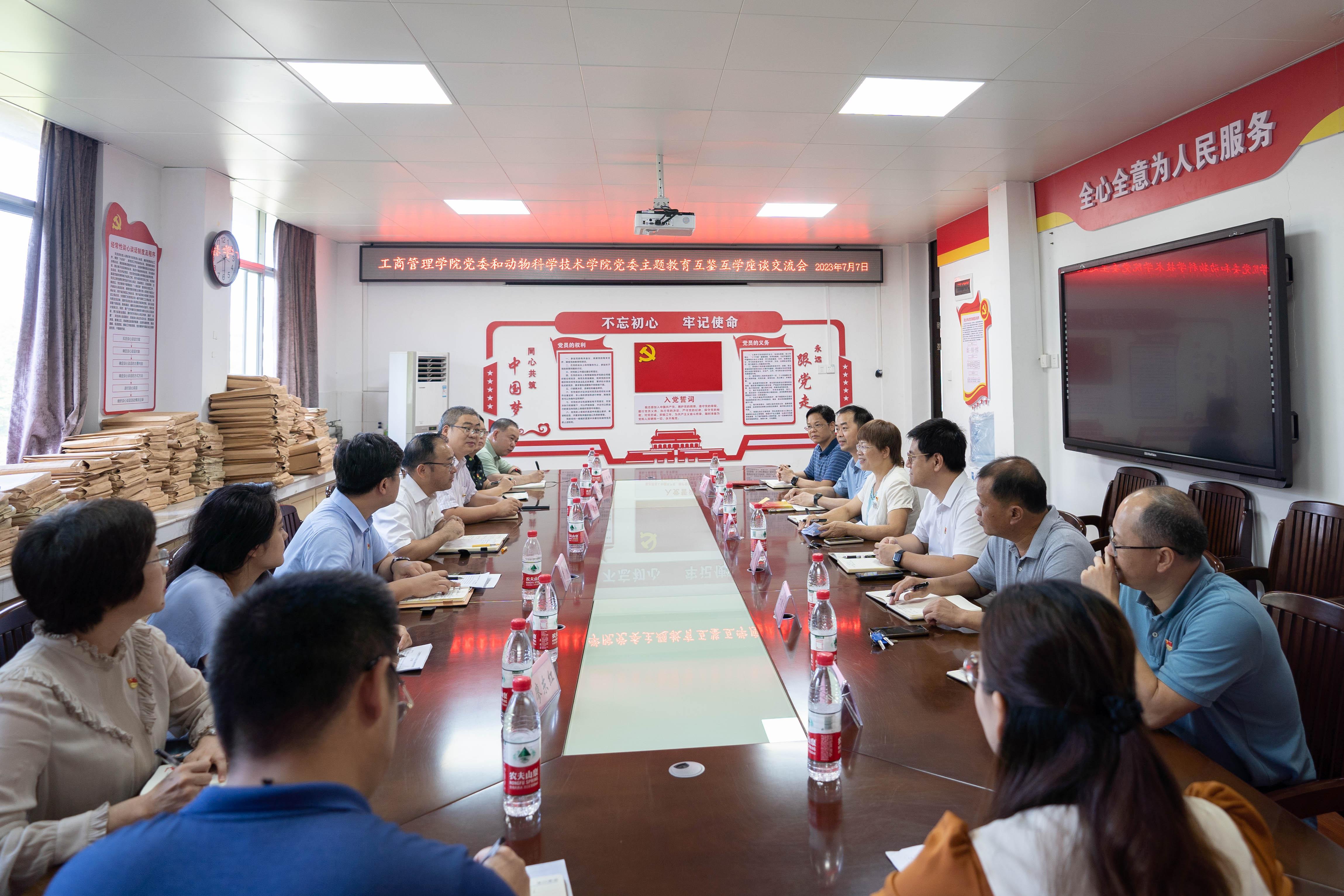 7月7日上午,公司党委与动物科学技术公司党委在动物科学技术公司302会议室举行主题教育互鉴互学座谈交流会。统战部閤明勇副部长,督导组成员田春、刘小燕到会指导。