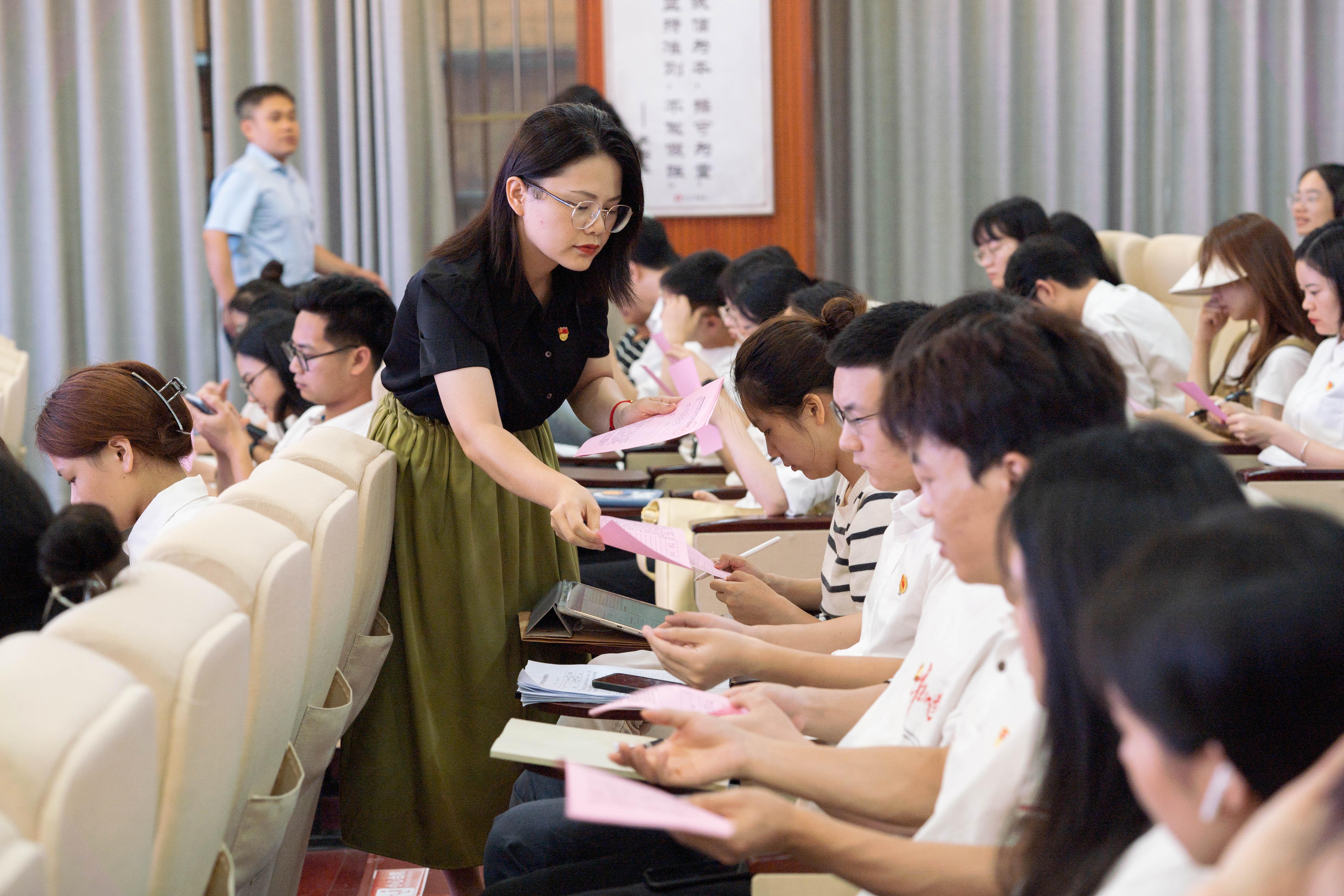 工作人员分发选票